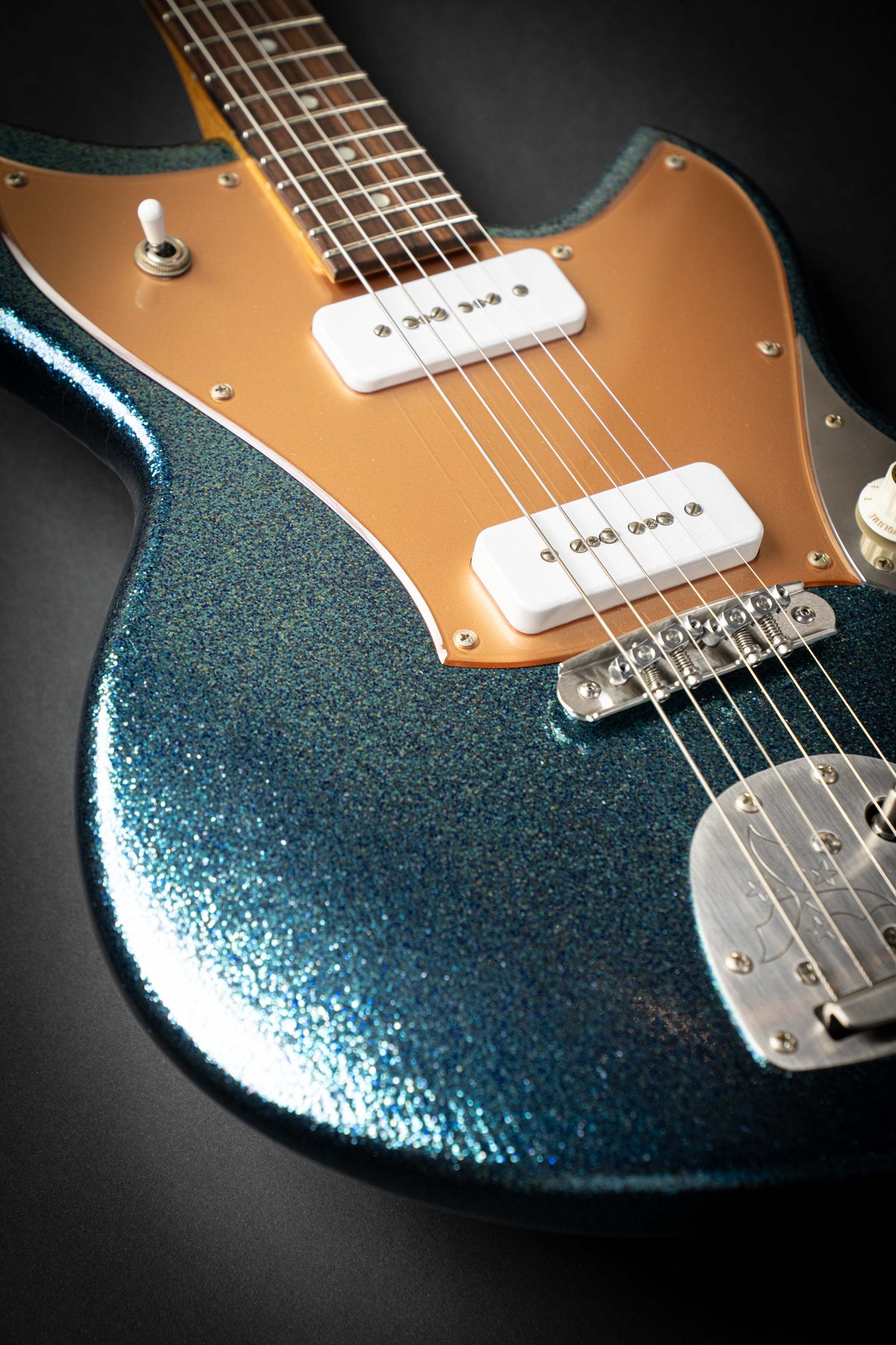 La Novo Serus J est produite en quantité limitée et bénéficie d'une fabrication soignée qui met en avant des essences sélectionnées et un hardware de grande qualité. Guitare à la signature sonore unique, la Serus J est construite autour d'un corps en "pin tempéré", d'un manche en érable roasted (érable flammé en option) et d'un vibrato Mastery NV. Ce modèle "Merman Sparkle" est équipé de micros Fralin P90 qui délivrent des sons épais, denses, mordants, avec ce coté aérien et cette niaque caractéristique des micros single coil sur-bobinés. Polyvalence et gros son au bout des doigts.