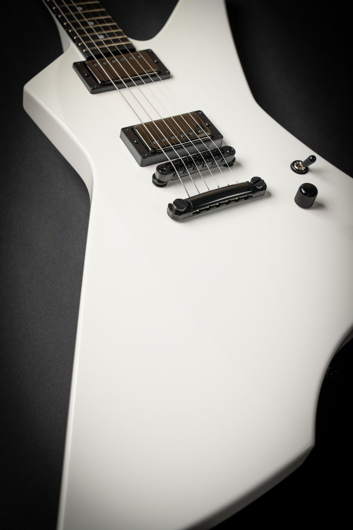 The James Hetfield signature Snakebyte is an Explorer-shaped guitar and a symbol of the legendary rhythm guitarist of Metallica. A variation of the EXP and MX-220, this model makes a strong impression with its massive size and its bulldozer-like sound when plugged in.