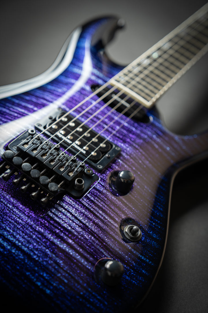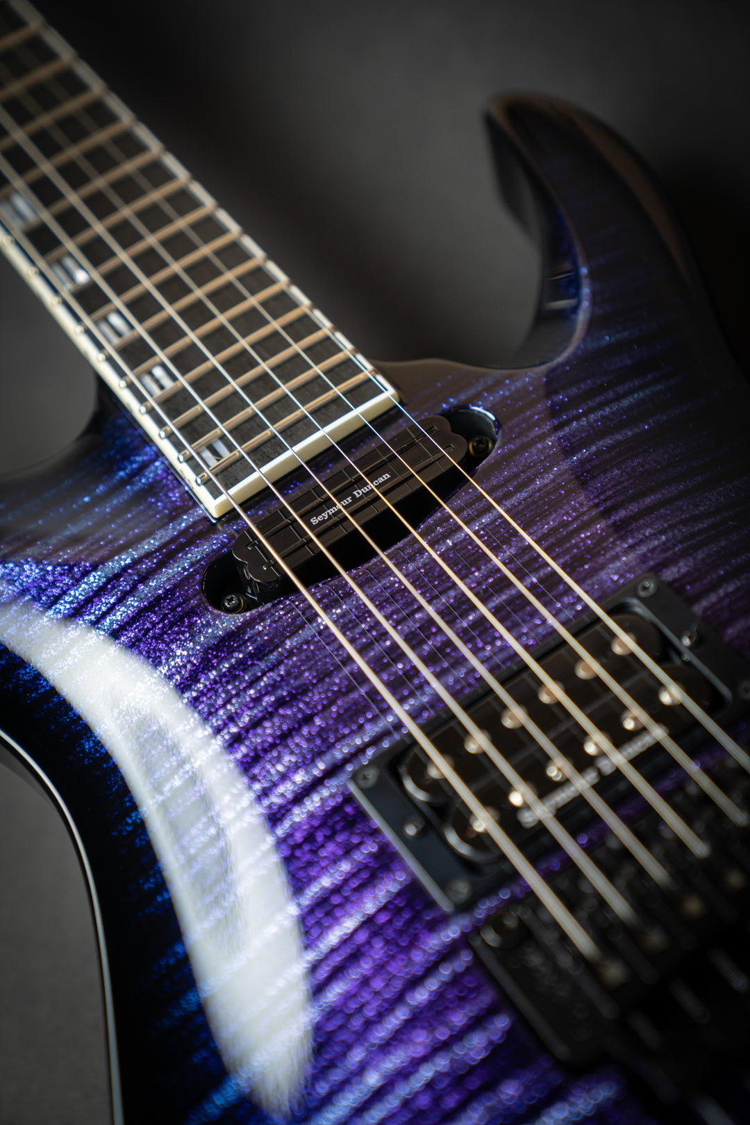 Ce modèle Horizon-I issu de la gamme Original Series bénéficie d'une sélection des essences implacable et du savoir faire inégalé du Custom Shop de la marque. Elle est construite autour d'un corps "arched top" en aulne sélectionné et d'un manche neck-thru en érable doté d'une touche ébène. Elle est équipée de micros Seymour Duncan taillés pour le gros son et d'un Floyd Rose original. Cet exemplaire unique, customisé par nos soins, bénéficie d'une finition custom colour "Glitter Storm Violet".